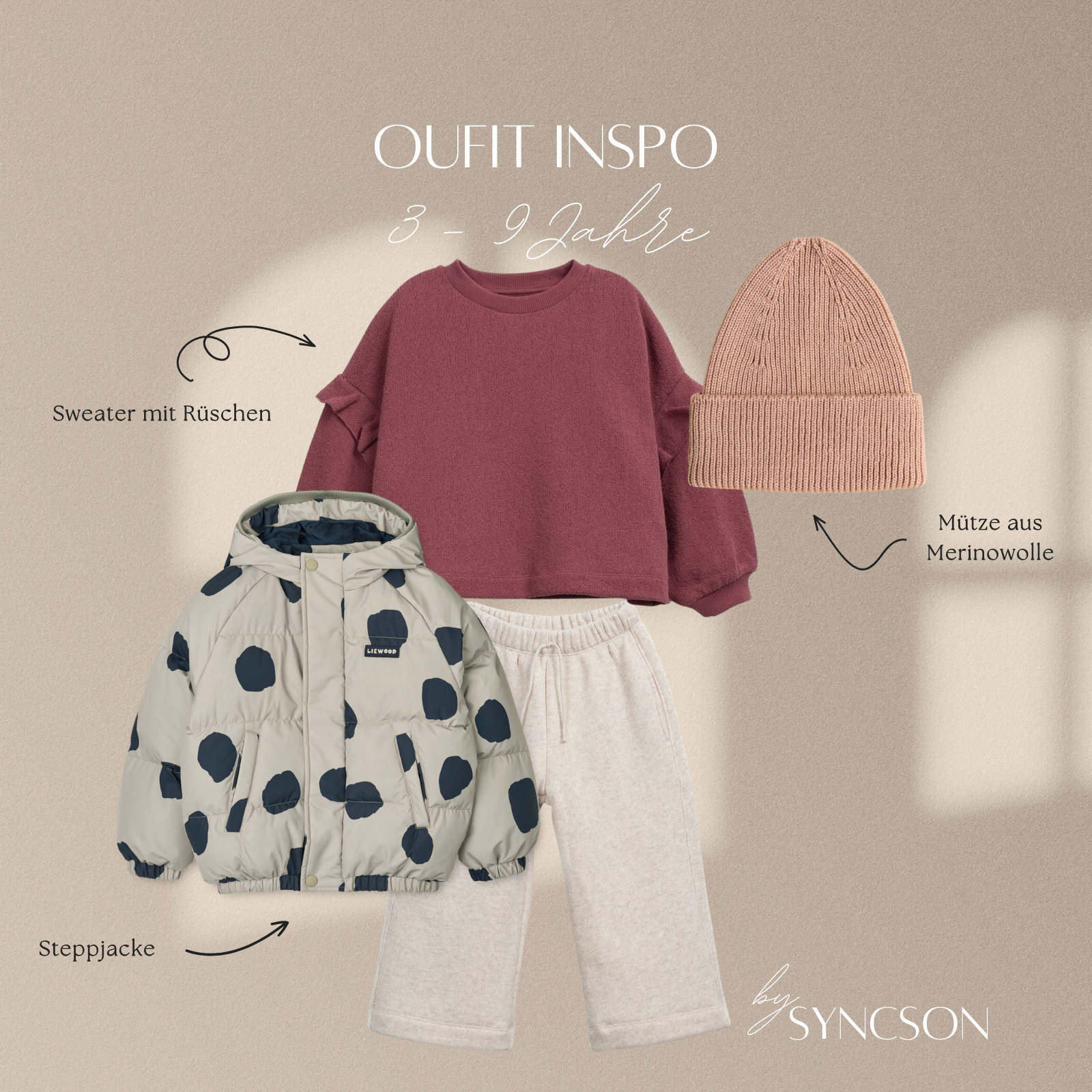 Keine Zeit, stundenlang nach dem perfekten Outfit zu suchen? Wir haben die Arbeit schon für Dich erledigt! Hier findest Du komplette Looks auf einen Klick. Lass Dich von unseren Kombinationen inspirieren und entdecke neue Lieblingsoutfits für Deine Minis. Klick einfach auf das Bild der jeweiligen Alterskategorie um alle Outfit Inspirationen zu entdecken!