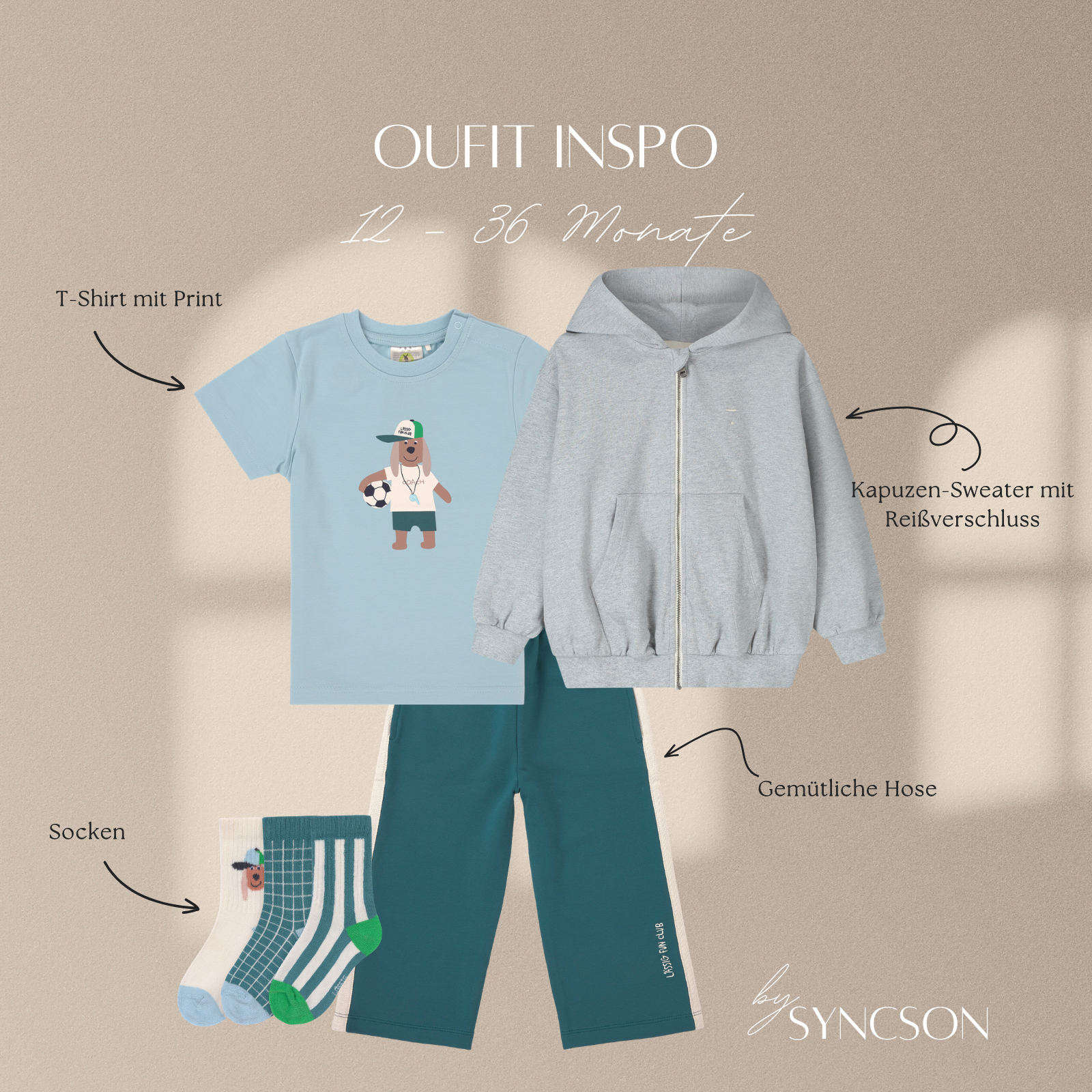 Tauche ein in die Welt der süßen und trendigen Babyoutfits. Mit "Shop the Look" bei SYNCSON ist es so einfach wie nie, Deine Minis modisch einzukleiden. Viel Spaß beim Shoppen!
