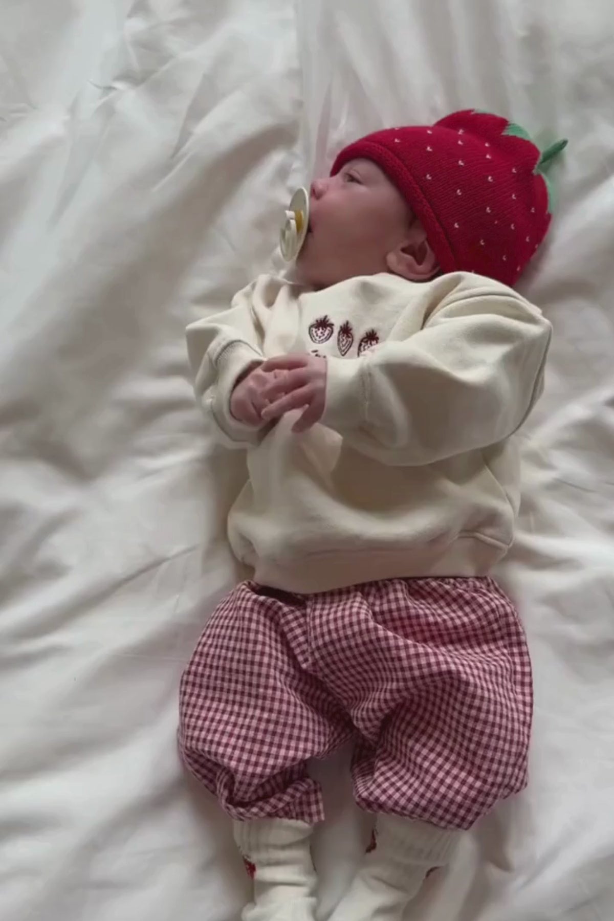 Das süße BERRY CUTE Baby Sweatshirt in zartem Milk-Ton verzaubert mit dem niedlichen Schriftzug ''You're Berry Cute'' und liebevoll gestickten Erdbeeren. Super weich, cozy und perfekt für Minis voller Freude und Sommerlaune, dazu gibt es die passenden süßen Strawberry Socken.